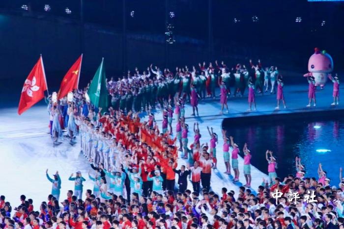 運動員進場,粵港澳運動員依舊組成一隊(中評社 盧哲攝)