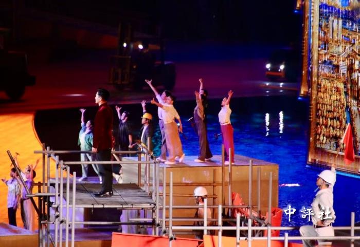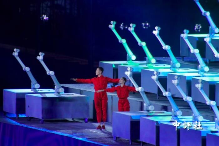 高空電子屏幕配合表演靈動絢麗(中評社 盧哲攝)