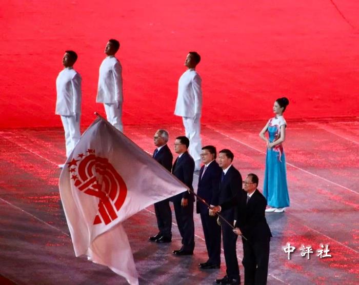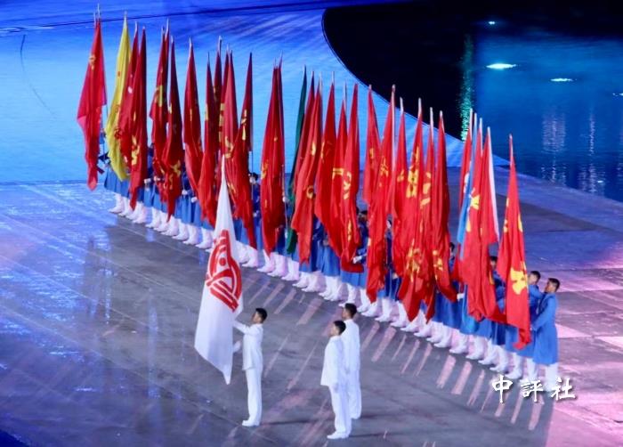 閉幕式上舉行了中華人民共和國運動會會旗交接儀式(中評社 盧哲攝)