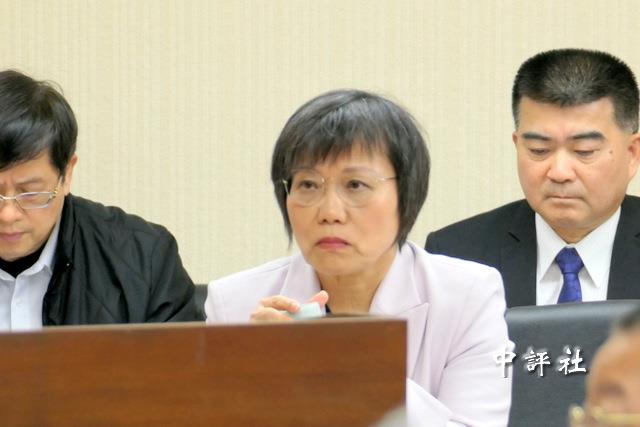 台“內政部長”劉世芳全程視線都放在前方,沒有轉到民眾黨委員李貞秀發言的方向。(中評社 張嘉文攝)