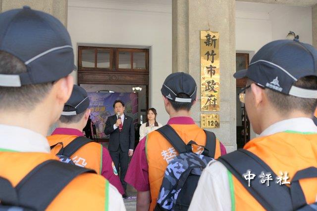 新竹市代理市長邱臣遠提醒所有替代役男安全第一。(中評社 盧誠輝攝)
