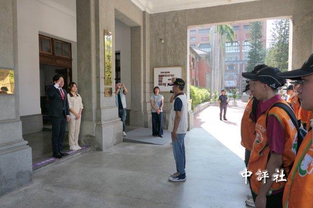 新竹市代理市長邱臣遠親自到場慰勉替代役男。(中評社 盧誠輝攝)