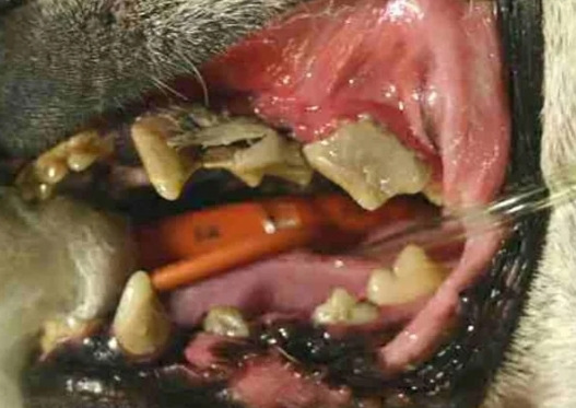 飼主應注意毛寶貝口腔健康,牙齒使用久了,會有牙結石進而引發牙齦發炎。(新北市動保處提供)