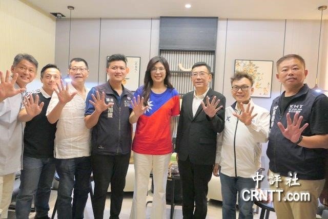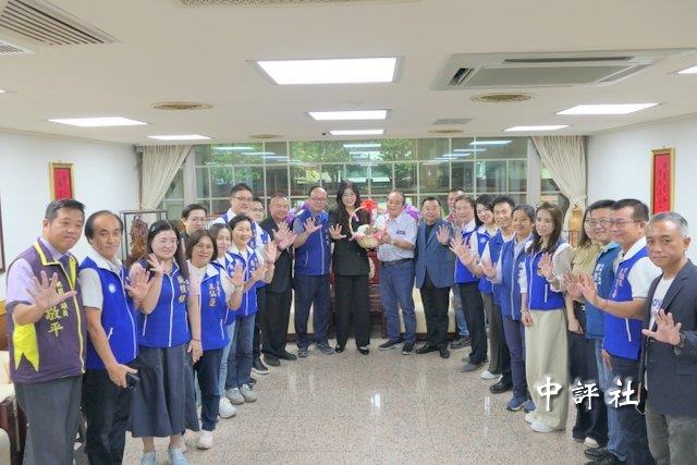 桃園市議會議長邱奕勝偕20多位藍軍議員14日大排場迎接國民黨主席候選人鄭麗文到訪。(中評社 盧誠輝攝)