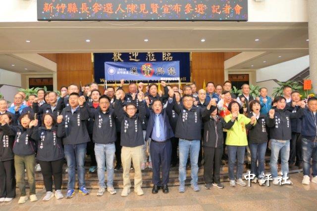 中評社新竹11月27日電(記者 盧誠輝)中國國民黨籍新竹縣副縣長陳見賢27日正式宣布將參選2026新竹縣長,他在國民黨籍新竹縣議會議長張鎮榮、副議長王炳漢的陪同下,在新竹縣議會召開記者會大秀肌肉,現場包括20多位國民黨、勞動黨、無黨籍新竹縣議員和上百位新竹縣鄉鎮長、各代表會正副主席與各工商團體都到場力挺。