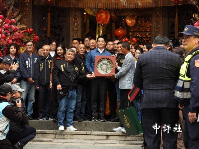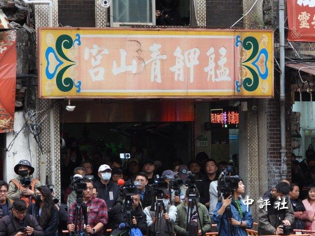 中評社台北12月9日電(記者 莊亦軒)台北萬華艋舺青山宮一年一度的青山王祭今天登場,下午3時35分,中國國民黨籍台北市長蔣萬安抵達青山宮,在參拜青山王後,4時時親自扶轎步出宮門,現場擠滿信眾,許多人拿著手機記錄難得畫面,氣氛強強滾。