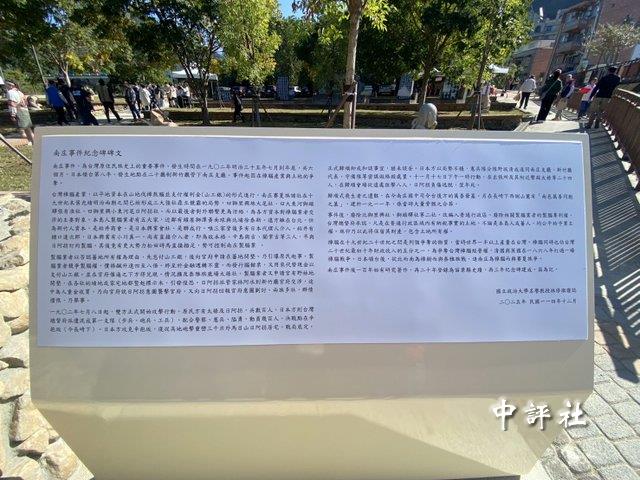 南庄事件紀念碑旁的紀念碑文。(中評社 盧誠輝攝)
