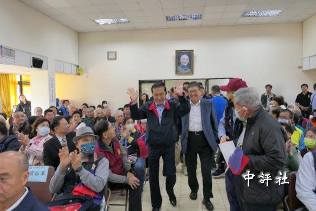 新竹縣長楊文科12日陪同國民黨副主席張榮恭出席進場。(中評社 盧誠輝攝)
