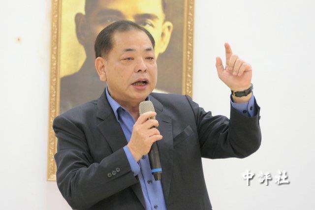 國民黨新竹縣黨部主委陳見賢12日在黨慶活動中致詞。(中評社 盧誠輝攝)