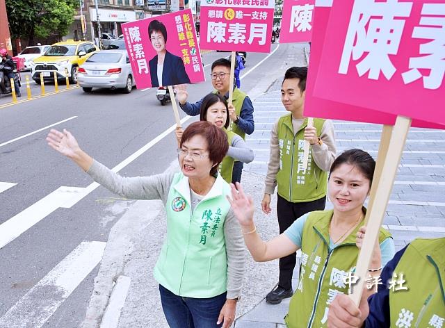 陳素月3日展現團結氣勢,偕同彰化縣議會“新芽連線”5位議員楊子賢、洪騰明、張欣倩、藍駿宇、劉珊伶,共同前往彰化市八卦山牌樓路口及民生市場掃街拜票,積極爭取鄉親支持,力拚初選過關。