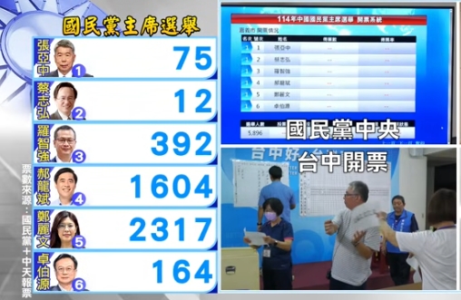 中評社快訊/中國國民黨黨主席選舉下午4點截止投票開始開票,目前已開票45分鐘,鄭麗文得票仍穩定領先郝龍斌。