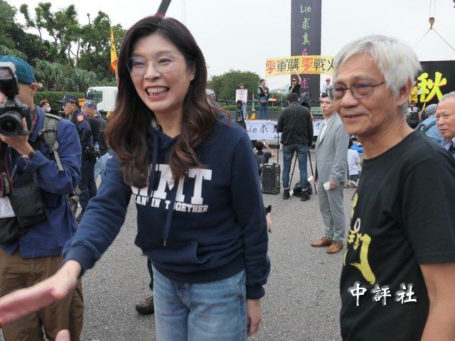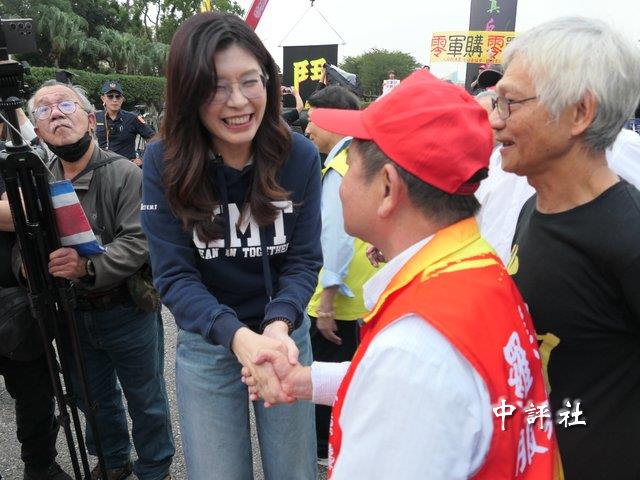 國民黨主席鄭麗文30日出席秋鬥遊行在秋鬥總指揮林子文陪同下向民眾致意。(中評社 黃偕華攝)