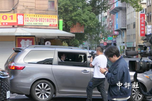 朱立倫的座車駛離智庫。(中評社 張嘉文攝)