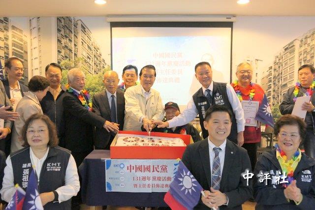 國民黨副主席張榮恭和黨員一起切蛋糕慶祝131周年黨慶。(中評社 盧誠輝攝)