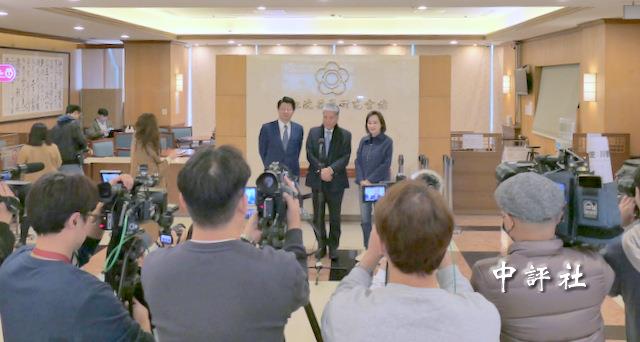 左起藍委謝龍介、李鴻源、藍委柯志恩共同接受媒體採訪。(中評社 俞敦平攝)