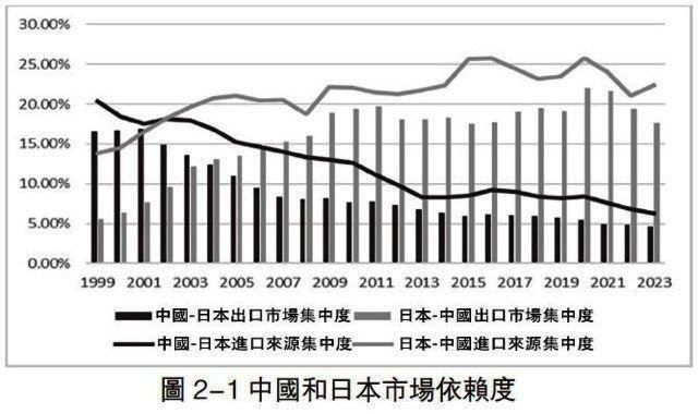 從進出口依存度的雙向變動看,中日貿易關係呈現“中國對日本依存度全面下降,日本對中國依存度持續上升”的特徵。這一演變表明中國經濟結構優化、貿易多元化戰略成效顯著,也凸顯了日本對中國市場與供應鏈的需求加深,反映出東亞經濟格局中中日市場需求與產業供給關係的動態調整。