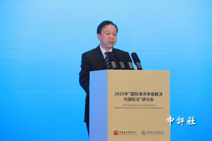 中國海洋發展基金會理事長呂濱在2025年“國際海洋爭端解決與國際法”研討會開幕式上致辭(中評社 邱姿爽攝)