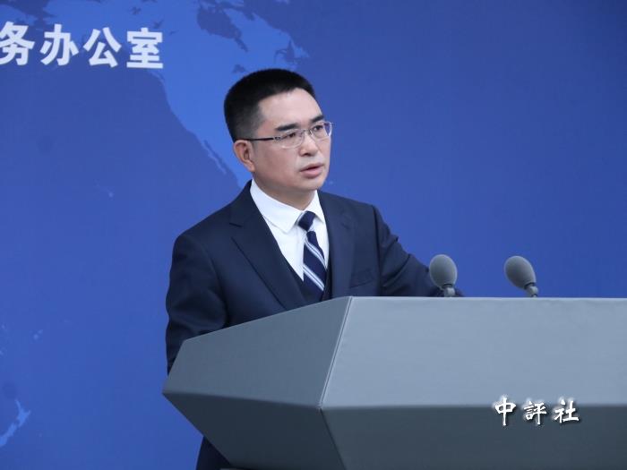 國台辦發言人陳斌華主持例行新聞發布會並回答記者提問(中評社 陳思遠攝)