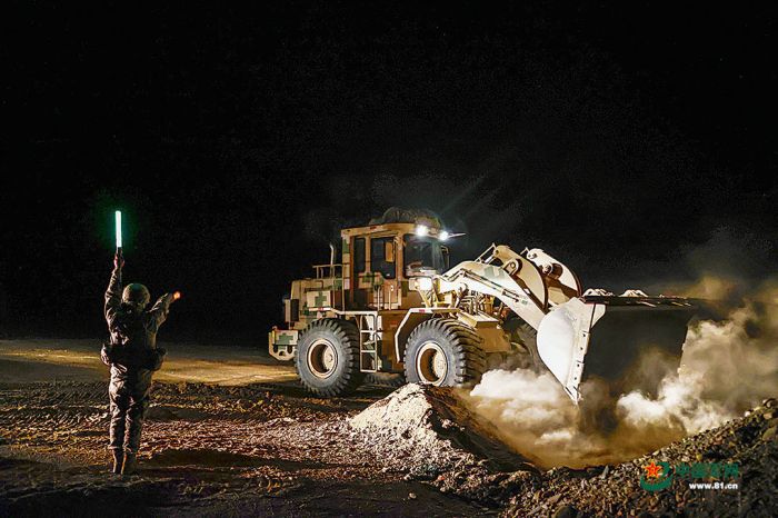 “前方道路發現多重障礙!”夜幕初降,新的行動指令傳來。官兵立即轉場,投入新的任務。指揮員沉著指揮,官兵操作各型工程機械展開攻堅:裝載機鏟除三角錐、推土機推倒土墻、平地機平整路面……
