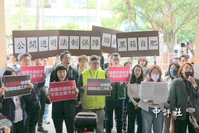 助理工會一開始向藍委陳玉珍嗆聲。(中評社 張嘉文攝)