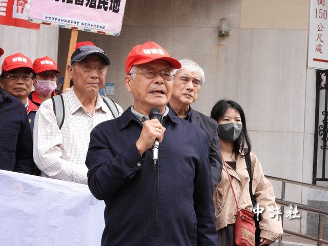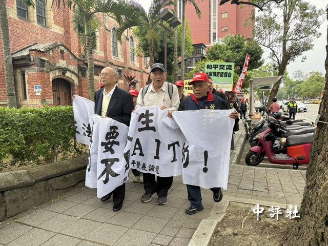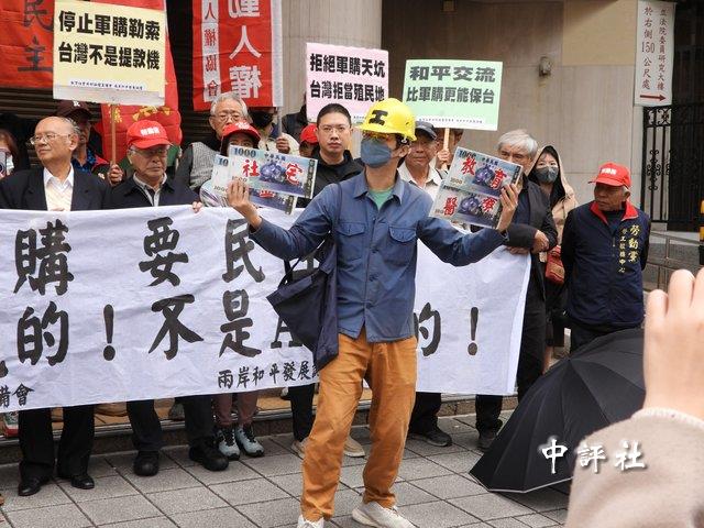 統派團體在“立法院”前抗爭,抗議AIT公開介入台灣軍購議題。(中評社 莊亦軒攝)