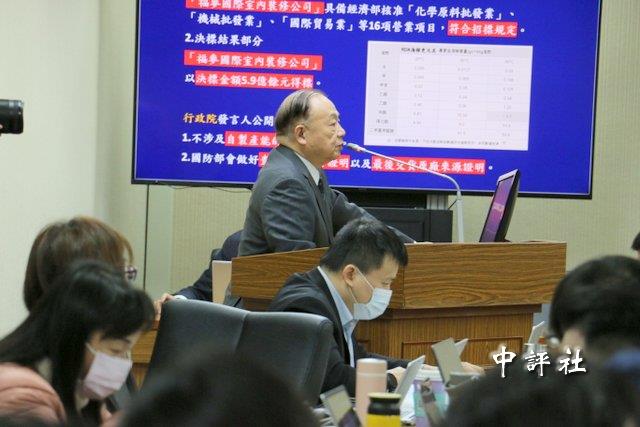 “立法院”“外交及國防委員會”邀台“國防部長”顧立雄報告“針對國軍各類型火藥原物料購案,廠商資格標準訂定及審認作法”並備質詢。