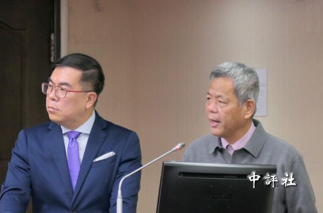 彭啓明(左)與環境管理署長顏旭明備詢。(中評社 俞敦平攝)