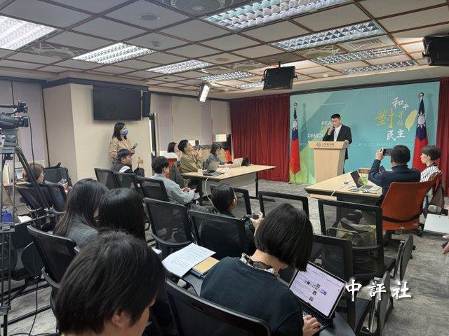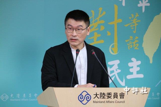 陸委會副主委兼發言人梁文傑主持記者會。(中評社 鄭羿菲攝)