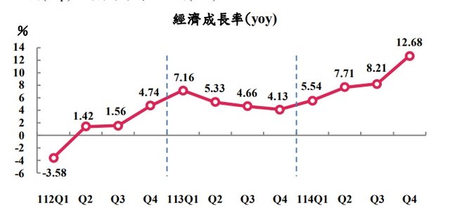 台“主計總處”公布2025年第4季經濟成長率概估為12.68%。(圖:“主計總處”提供)