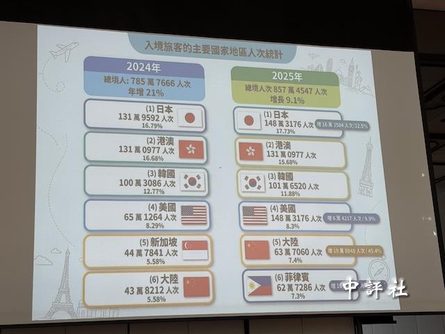 2024年、2025年來台國際觀光客統計一覽表。(中評社 鄭羿菲攝)