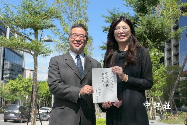 鄭麗文17日中午拜會馬英九,獲得馬的墨寶。馬英九基金會執行長蕭旭岑在旁陪同受訪。(中評社 張嘉文攝)