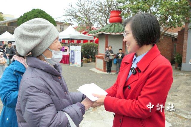 藍委徐欣瑩31日到新竹縣竹北市新瓦屋拜票。(中評社 盧誠輝攝)