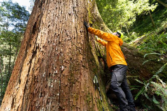 澳洲攝影團隊The Tree Project來台,為台灣第一高樹台灣杉“大安溪倚天劍”拍攝等身照。(The Tree Project提供)