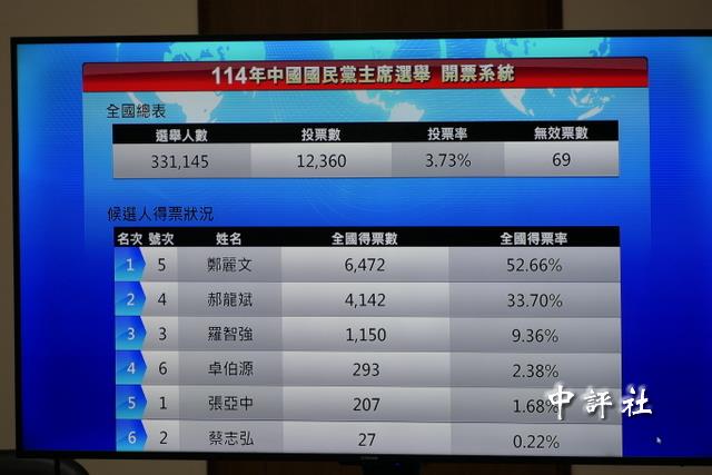 鄭麗文開票一小時過半得票率 領先郝龍斌